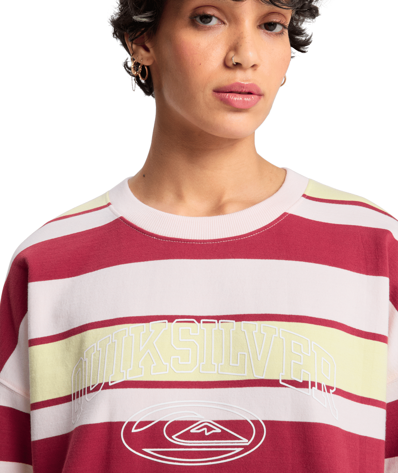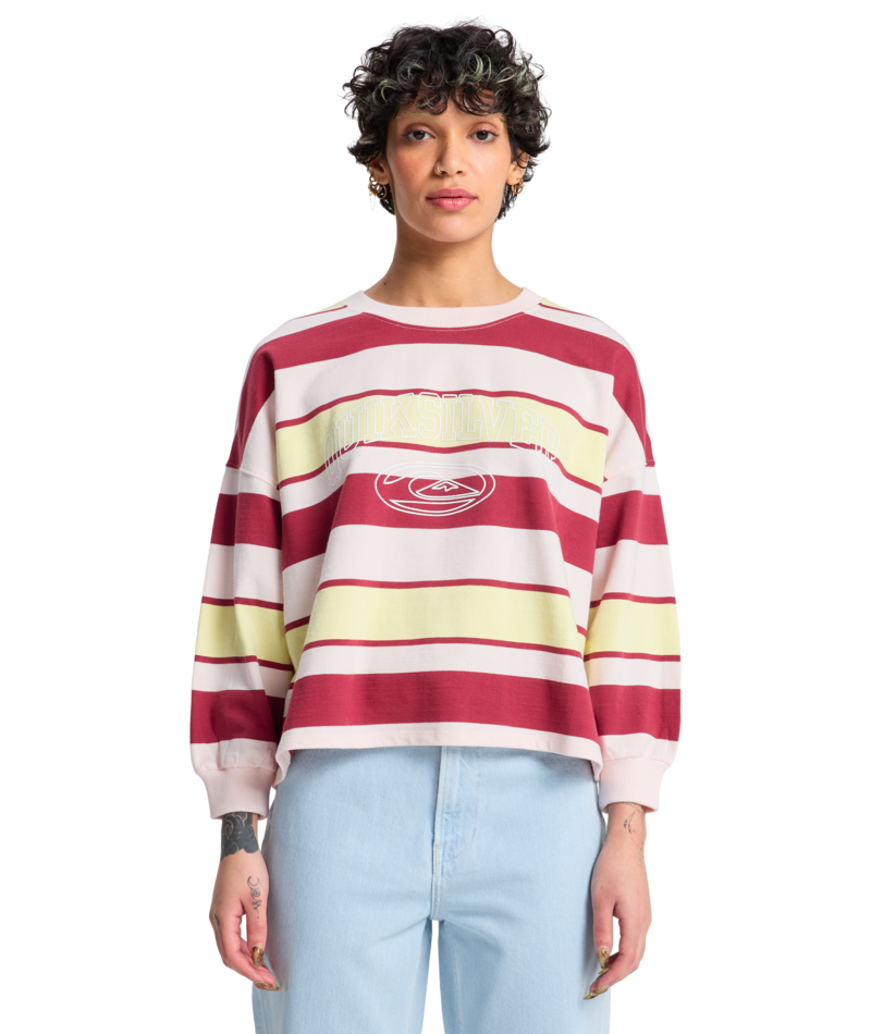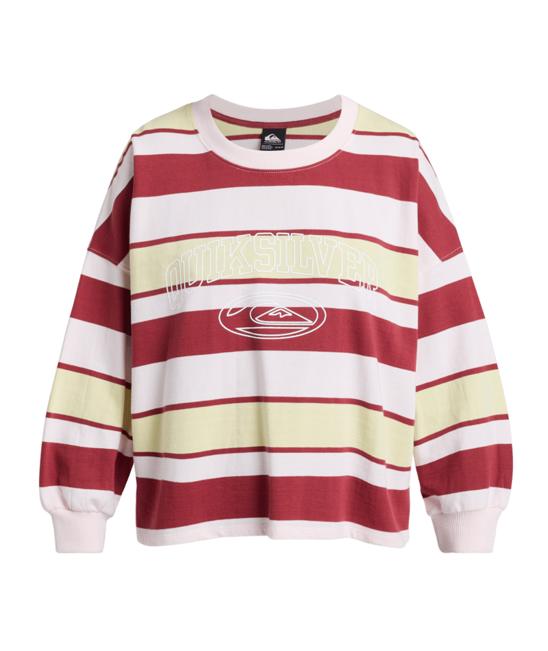 De Quiksilver Bright Sweater valt op door de stijlvolle horizontale strepen in lichtroze, lichtgeel en bordeaux. Dankzij het zachte materiaal draag je hem comfortabel tijdens elk seizoen. Bovendien geeft het frisse kleurenspel je casual look direct een speelse én modieuze touch.