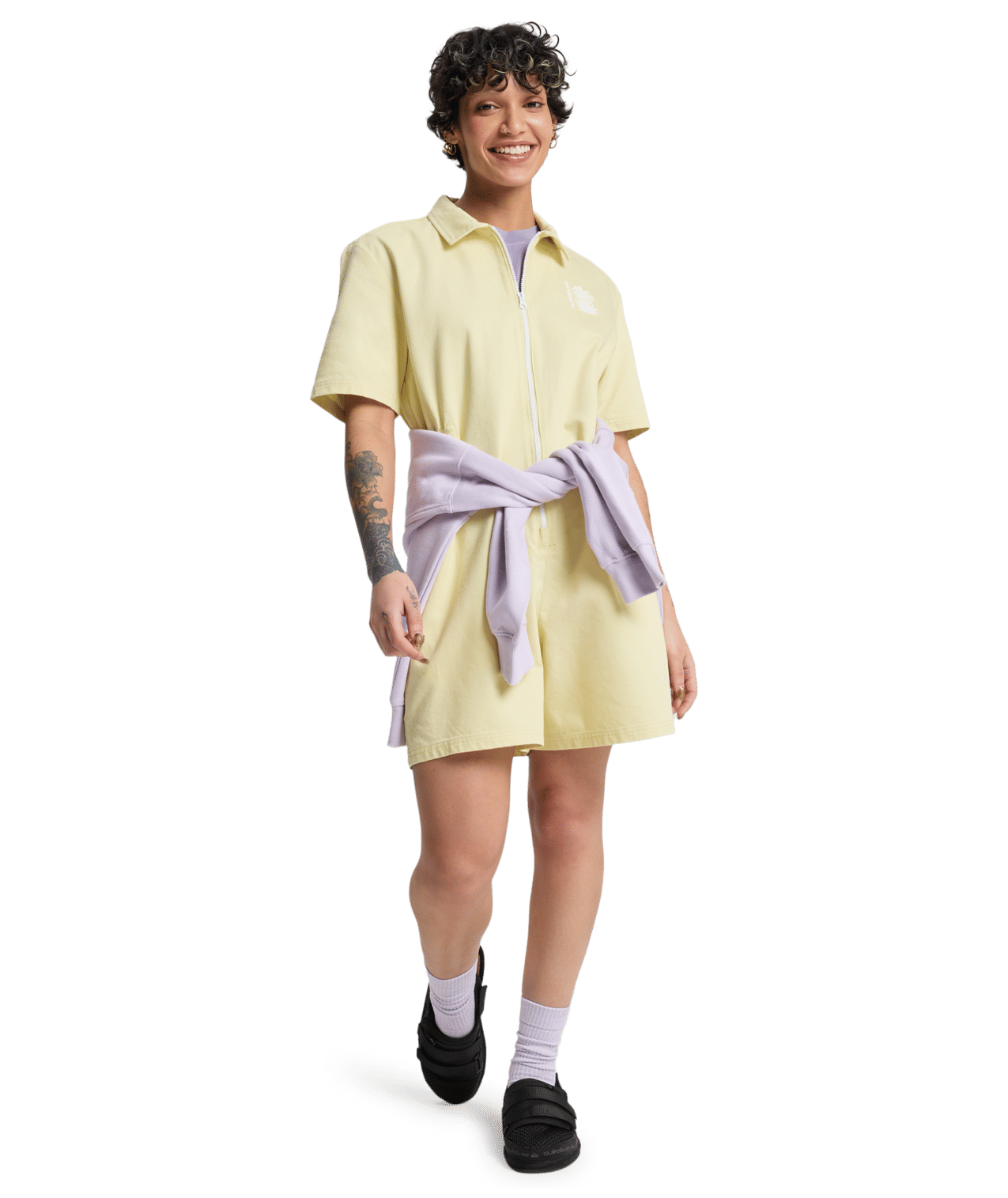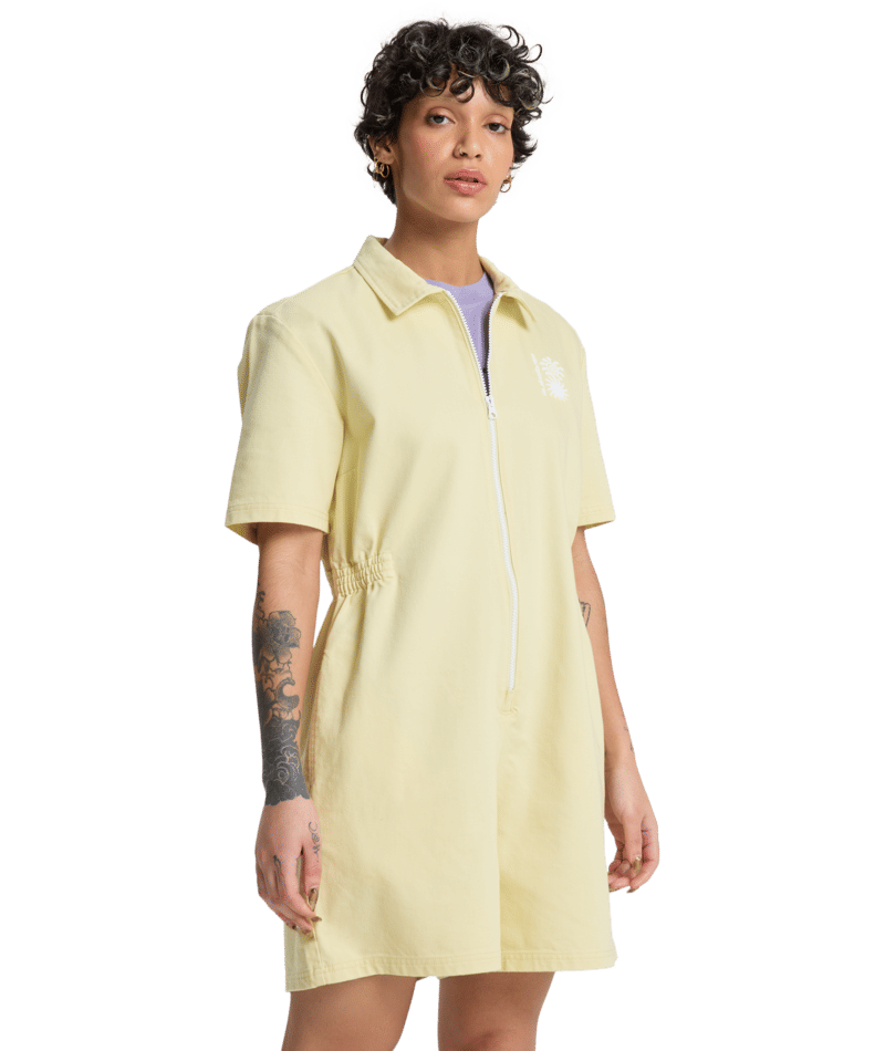 De Quiksilver Craig Romper in babygeel is luchtig, comfortabel en perfect voor zonnige dagen. Het speelse design zorgt voor een frisse, casual look.