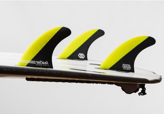 De hoek van de zijvinnen genereert hoge snelheid en uitzonderlijke grip, terwijl de kleinere center fin zorgt voor snelle respons en controle
